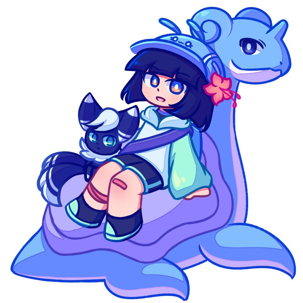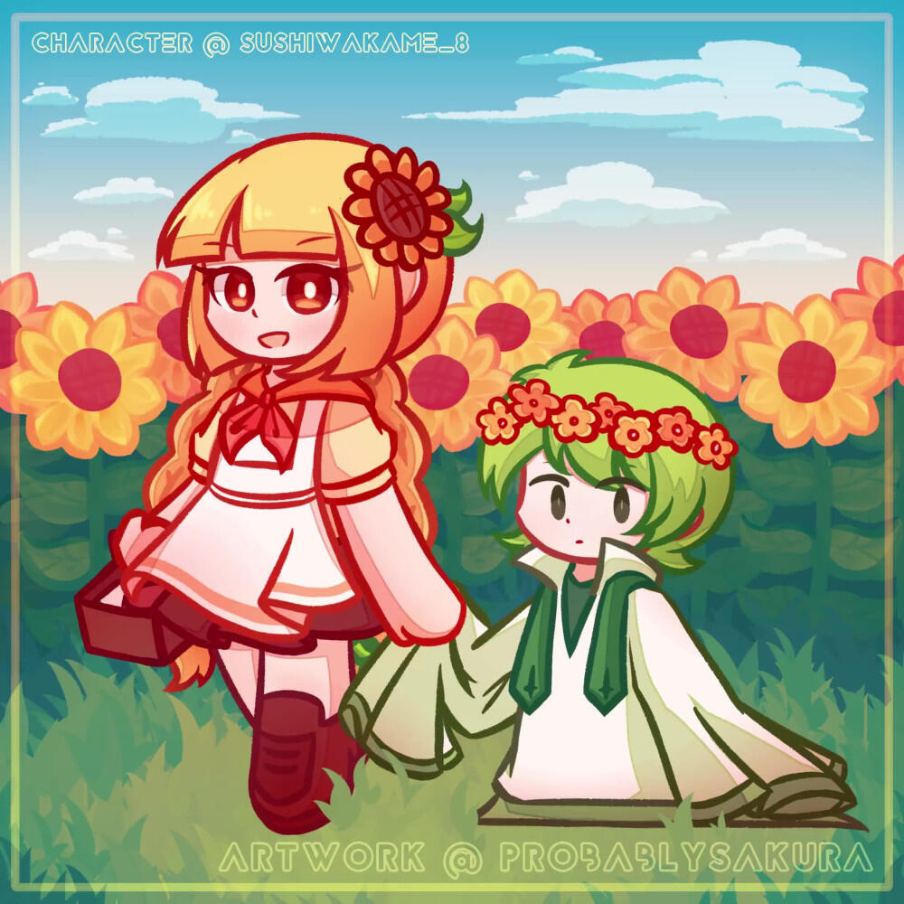 An animated illustration. It features 'chibi' styled characters with saturated colors and bold lines.The shading consists of a combination of cell-shading and halftones, or 'dot-shading.'