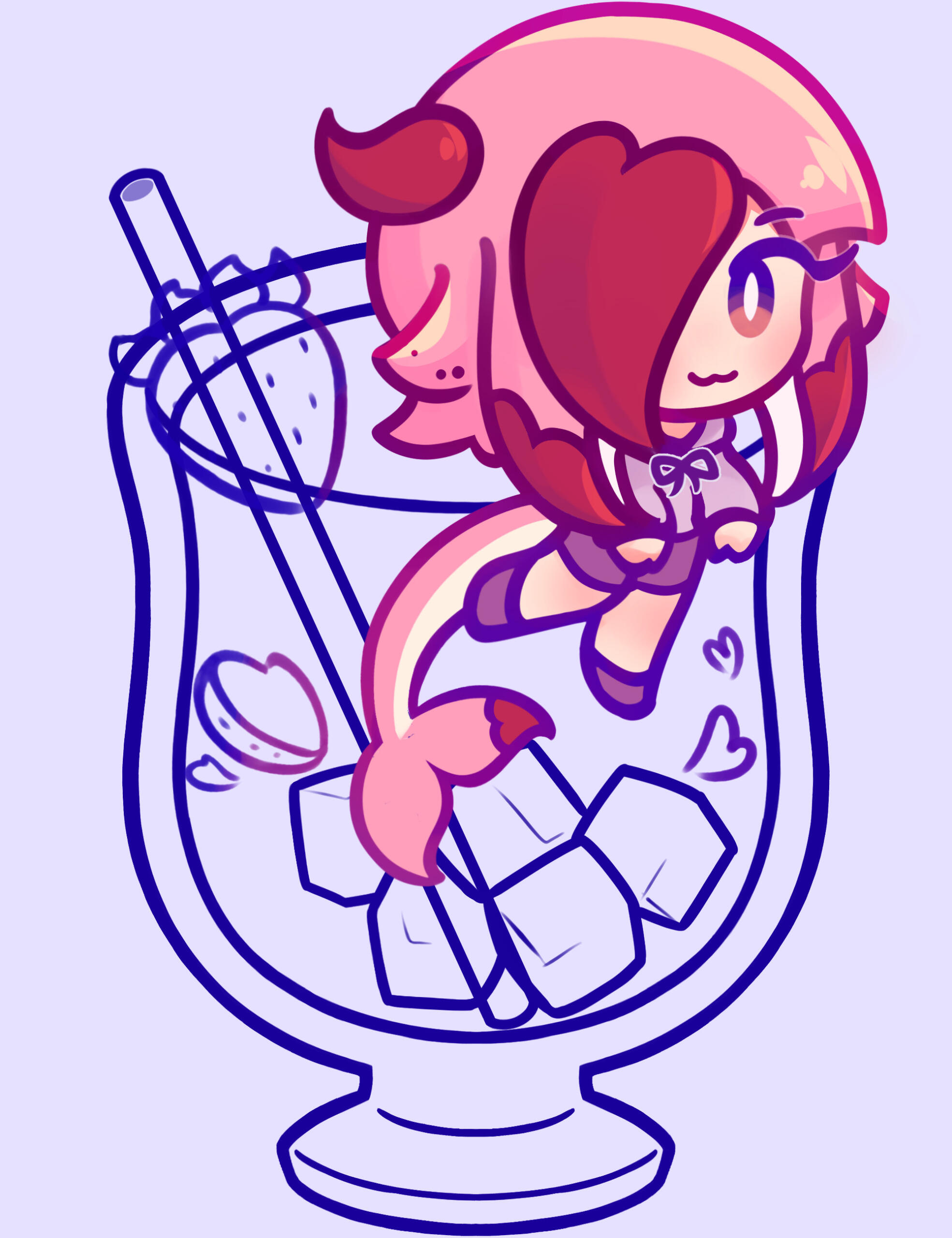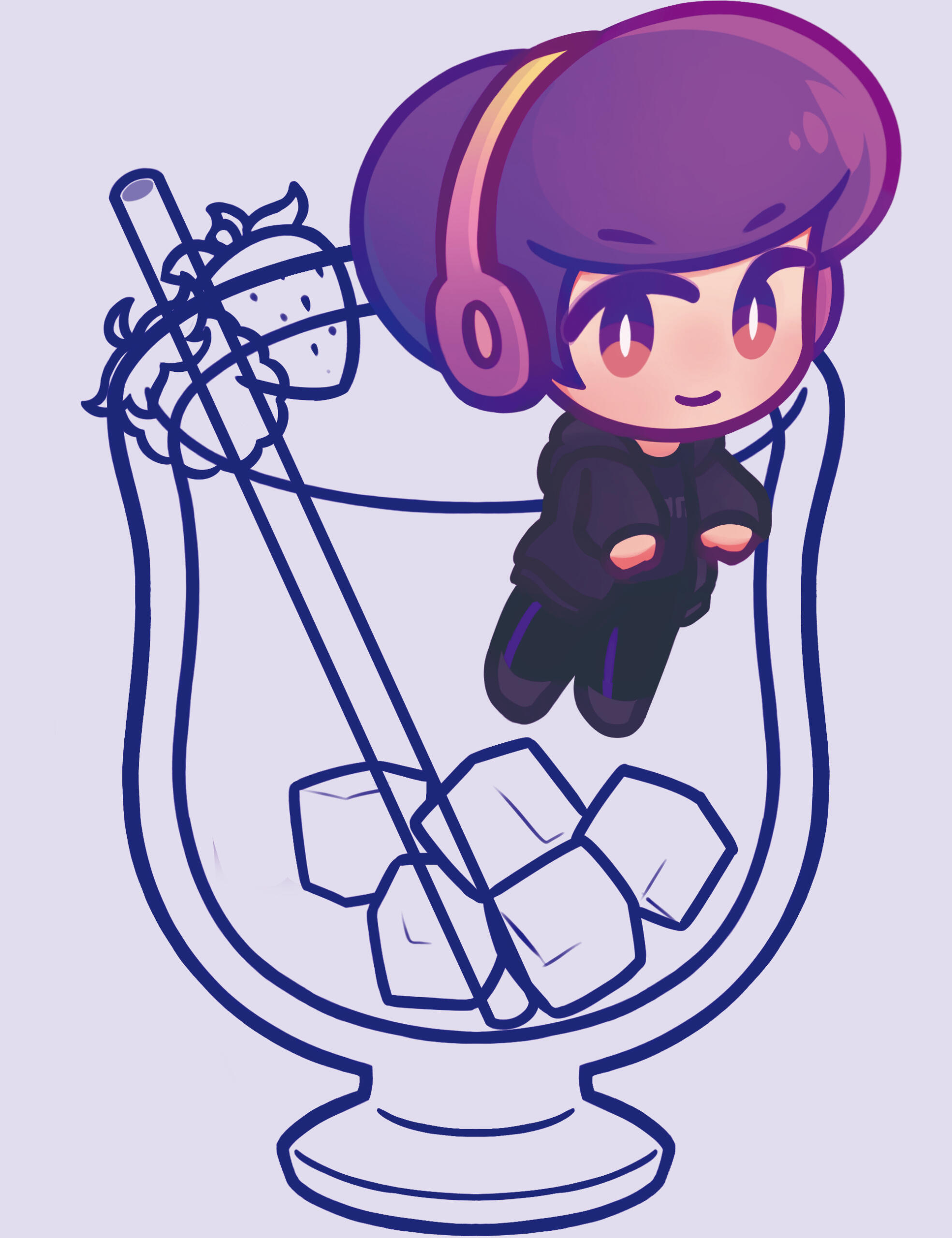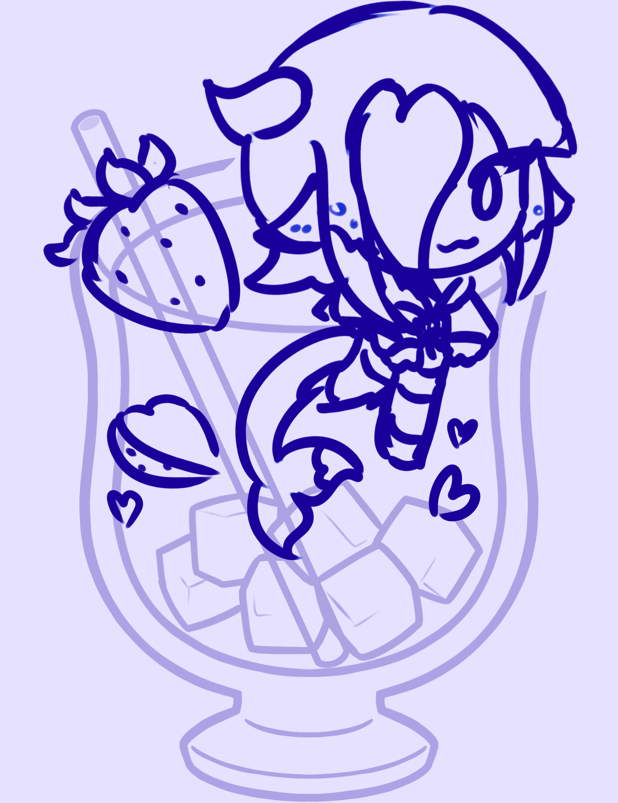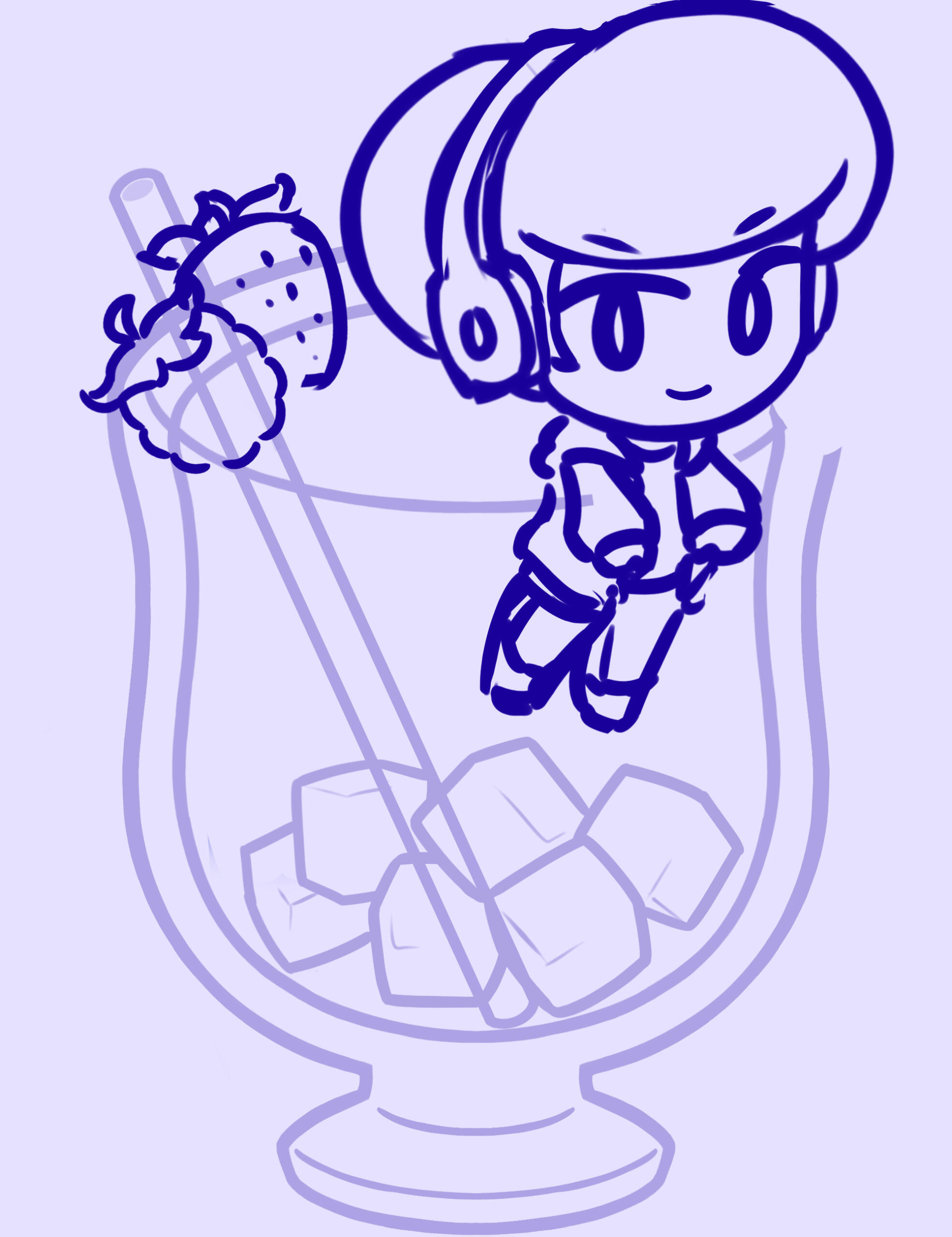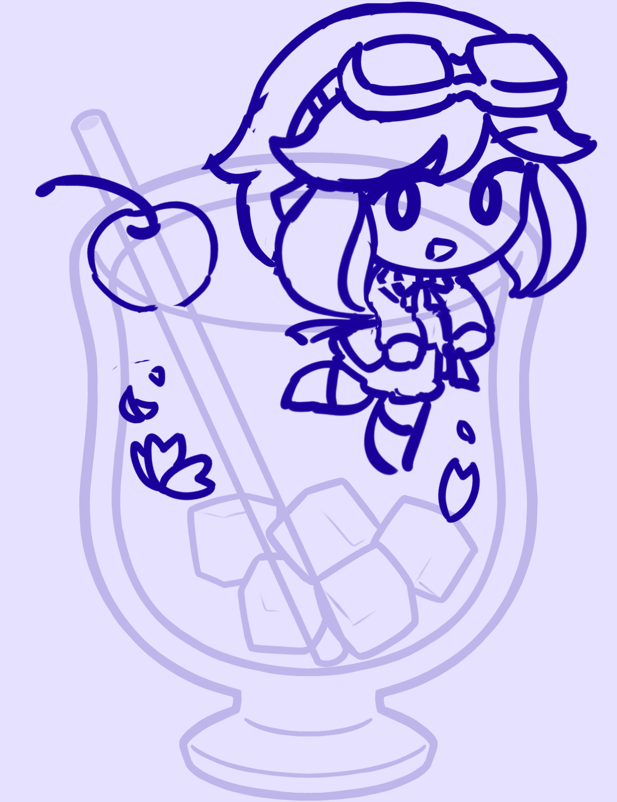 Initial sketches. Project was intended to be for large acrylic standees, with semitransparent acrylic for the drink. Adapted into individual acrylic charms upon recipient's requests.