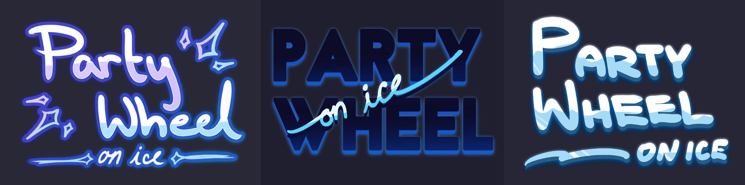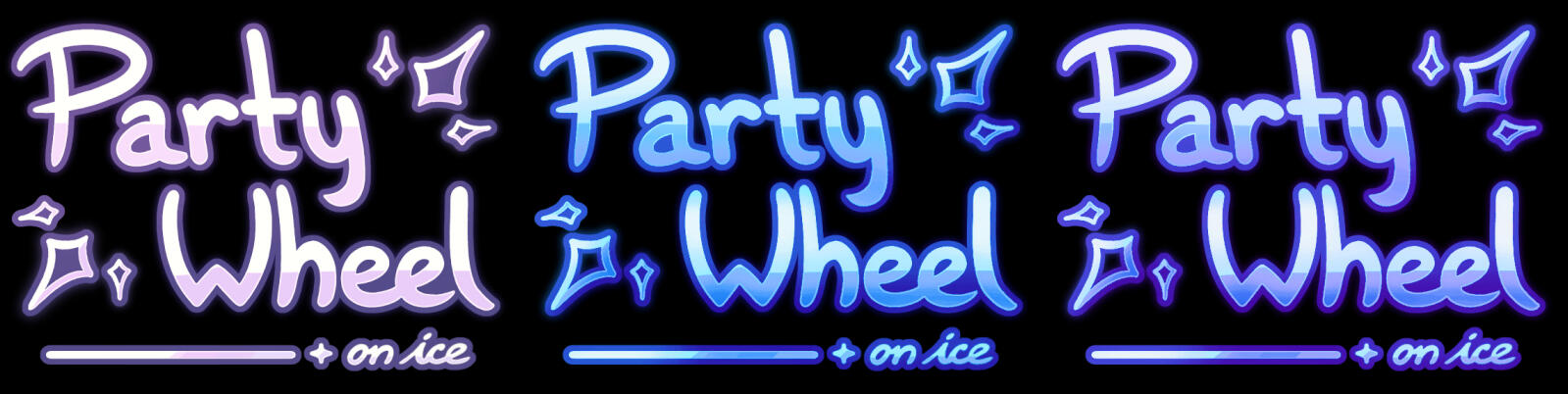 Animated text logo of Party Wheel, an online e-sports tournament held in winter. The event hosted 37 teams and over 150 players.The diamond shapes represent the ends of a snowflake, while the entrance animation portrays an effect of shining a light through ice or glass.