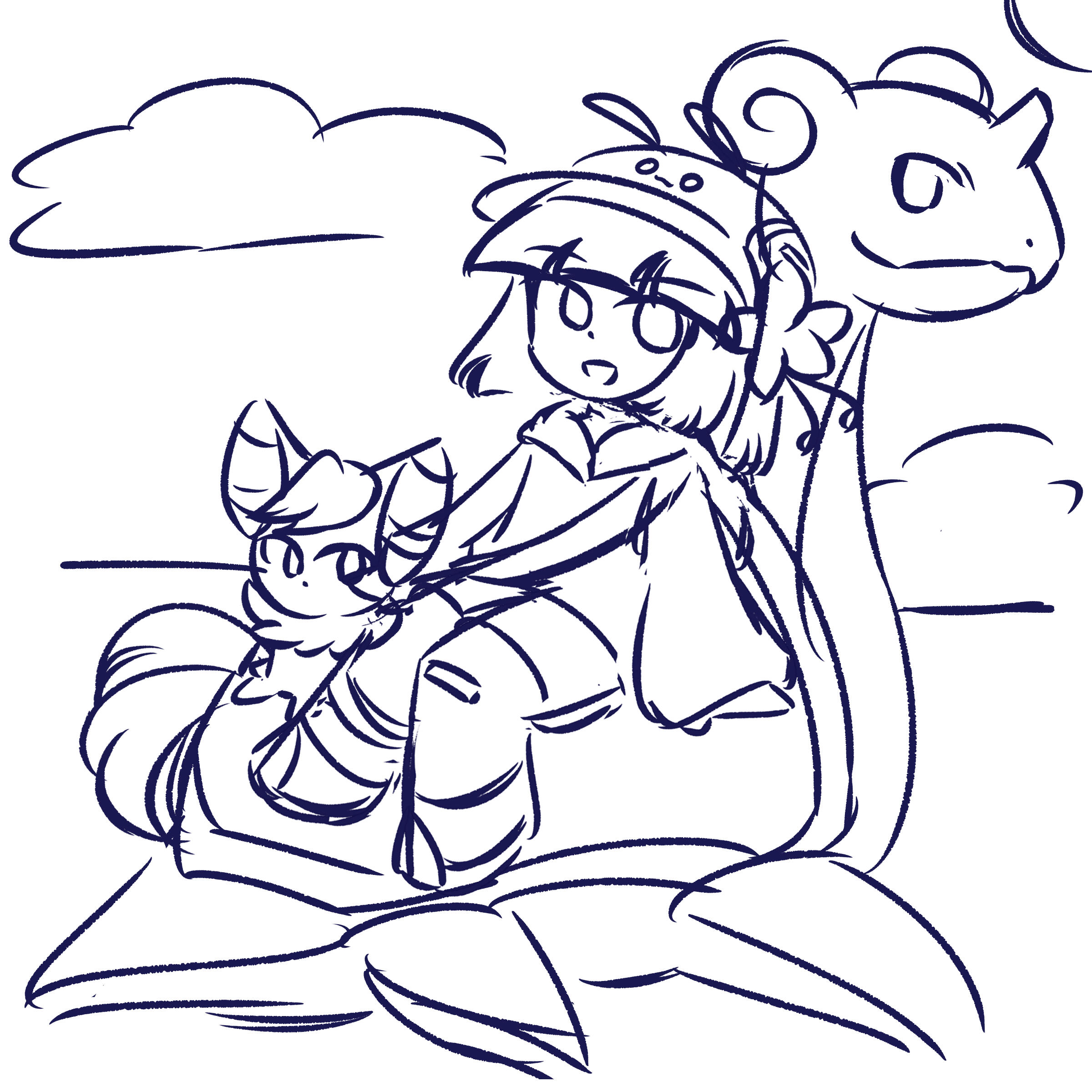 Initial lineart and coloring. As this personal project was worked on sporadically over a long period of time, the art style had later changed with the artwork eventually being redrawn entirely.